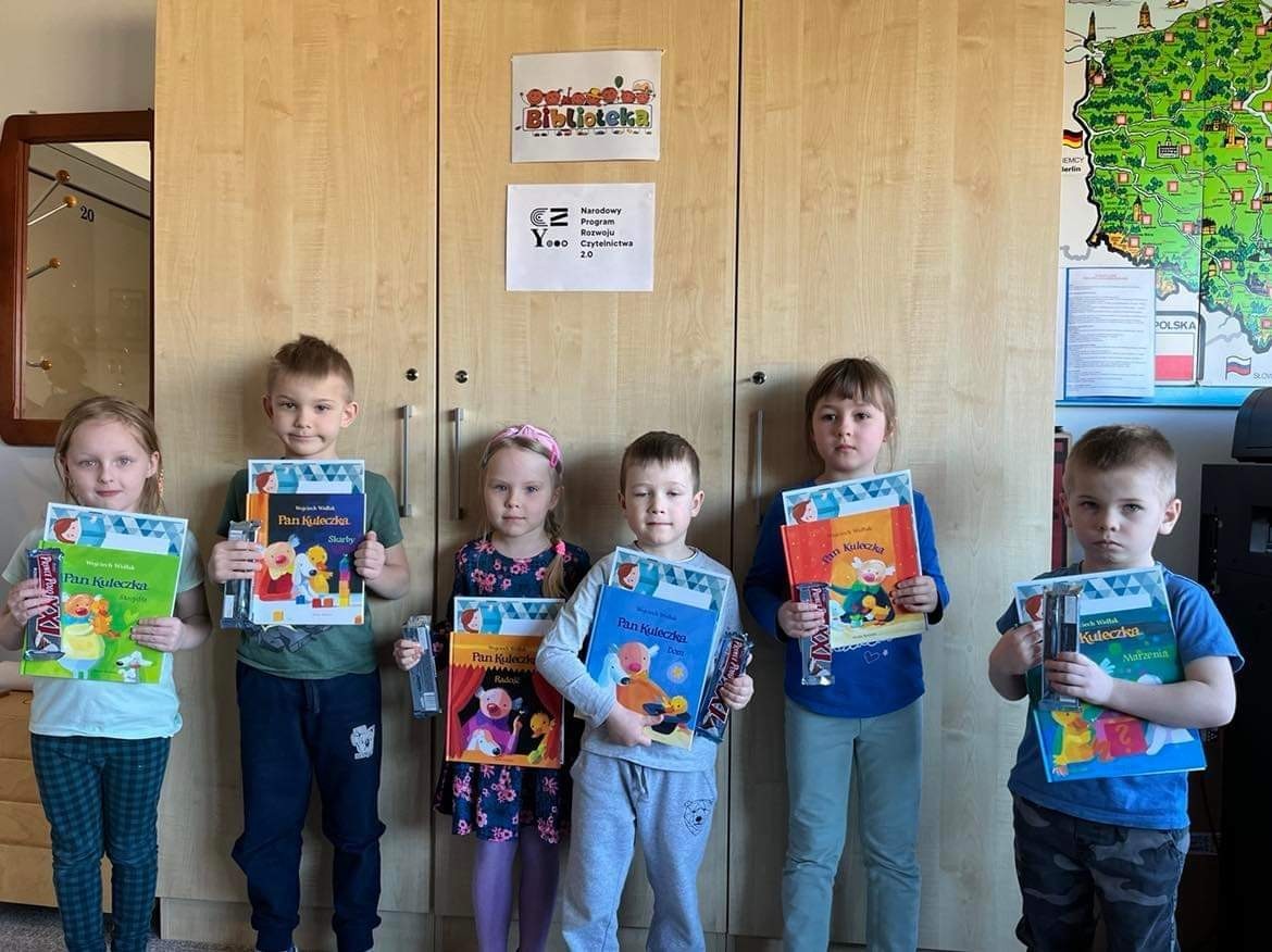 Dnia 10 marca 2022 roku nastąpiło wręczenie nagród za czynny udział naszych wychowanków w konkursie plastyczno – literackim pt: ,, Zimowa opowieść". Konkurs zorganizowany został w ramach realizacji Narodowego Programu Rozwoju Czytelnictwa. Dzieci wraz z rodzicami przygotowały książeczki zawierające piękne, samodzielnie wykonane ilustracje oraz niepowtarzalną treść. Pani Dyrektor T. Rycak nagrodziła następujące dzieci: Anna Metera, Zofia Polska, Lilianna Lis, Aleksander Paluszek, Jakub Szyszka, Antoni Gogolewski. Wszystkim dziękujemy za udział i życzymy dalszych sukcesów artystycznych!!