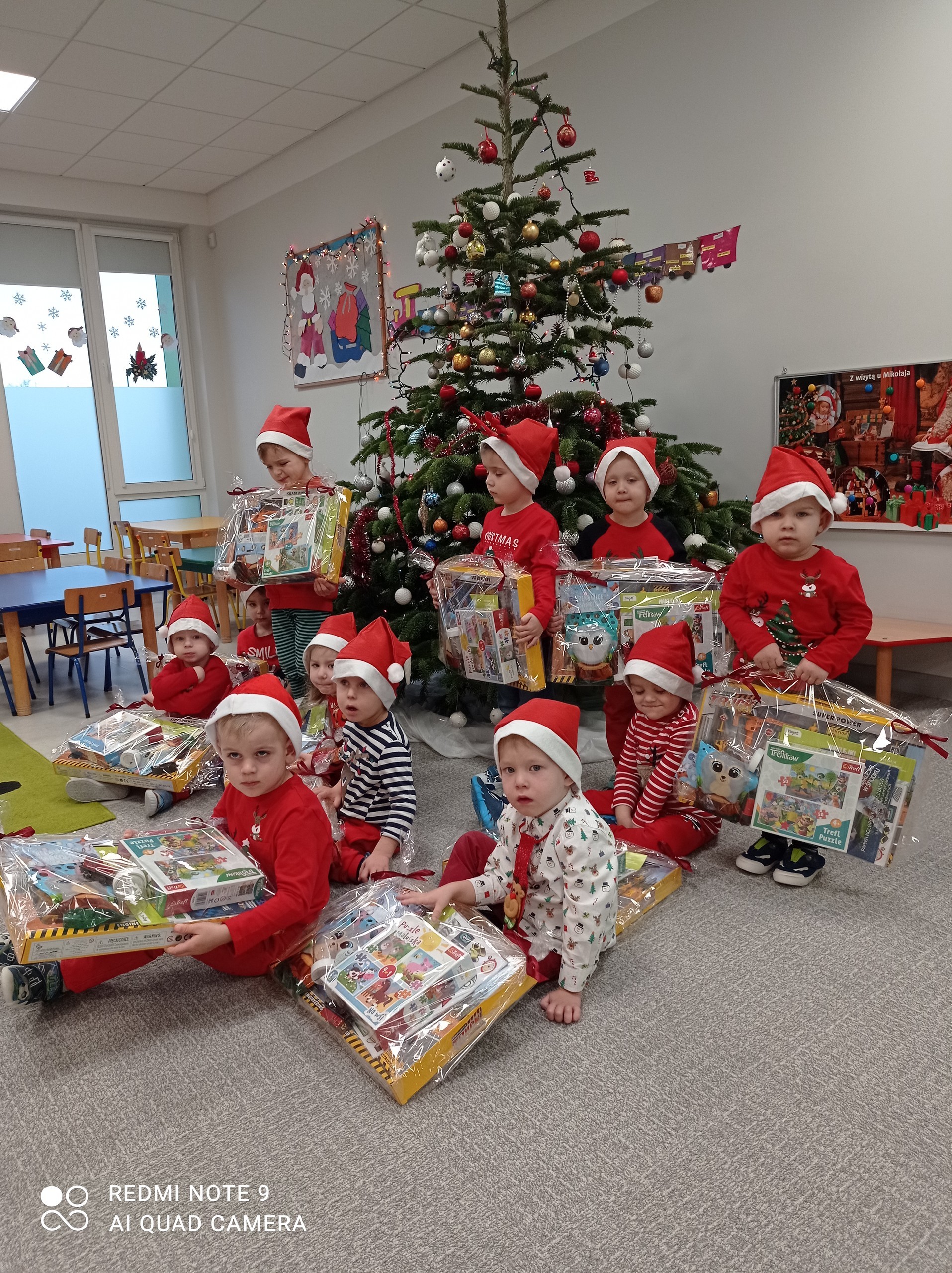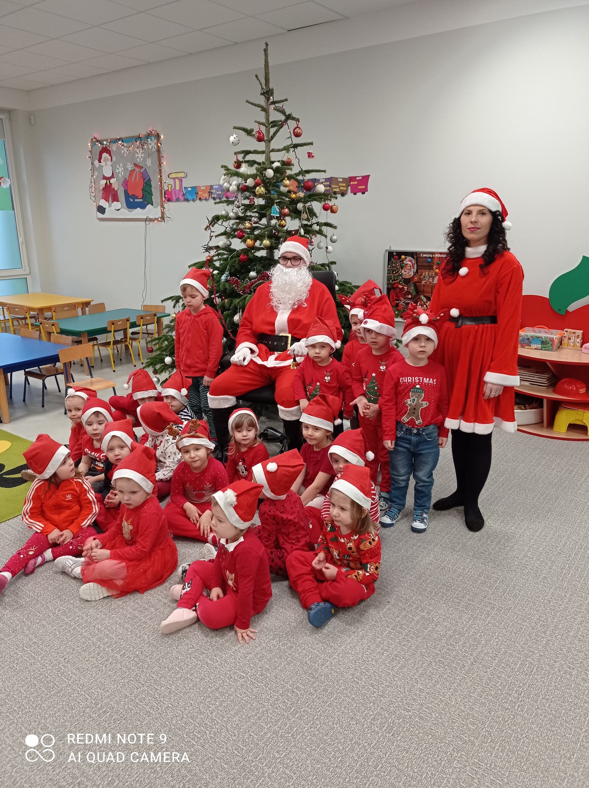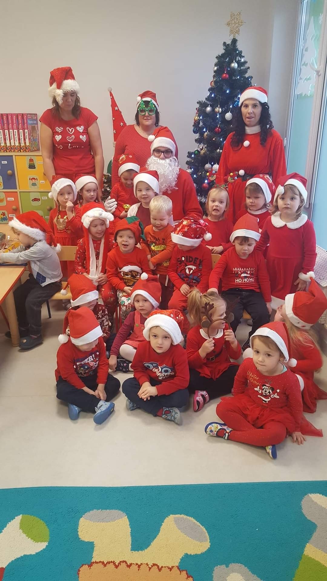 Jak co roku, 6 grudnia nasze przedszkole odwiedził Święty Mikołaj. Już od samego rana dzieci pięknie wystrojone nasłuchiwały charakterystycznego dźwięku dzwoneczka, zwiastującego przyjście długo wyczekiwanego gościa. Święty Mikołaj dotarł na czas. Zmęczony dźwiganiem wielkiego worka z prezentami, ale jak zawsze uśmiechnięty usiadł przy pięknie ubranej choince. Przedszkolaki przywitały Mikołaja wierszem i piosenką, za co zostały obdarowane wspaniałymi upominkami. Każdy przedszkolak z przekonaniem odpowiadał Mikołajowi, że był bardzo grzeczny.