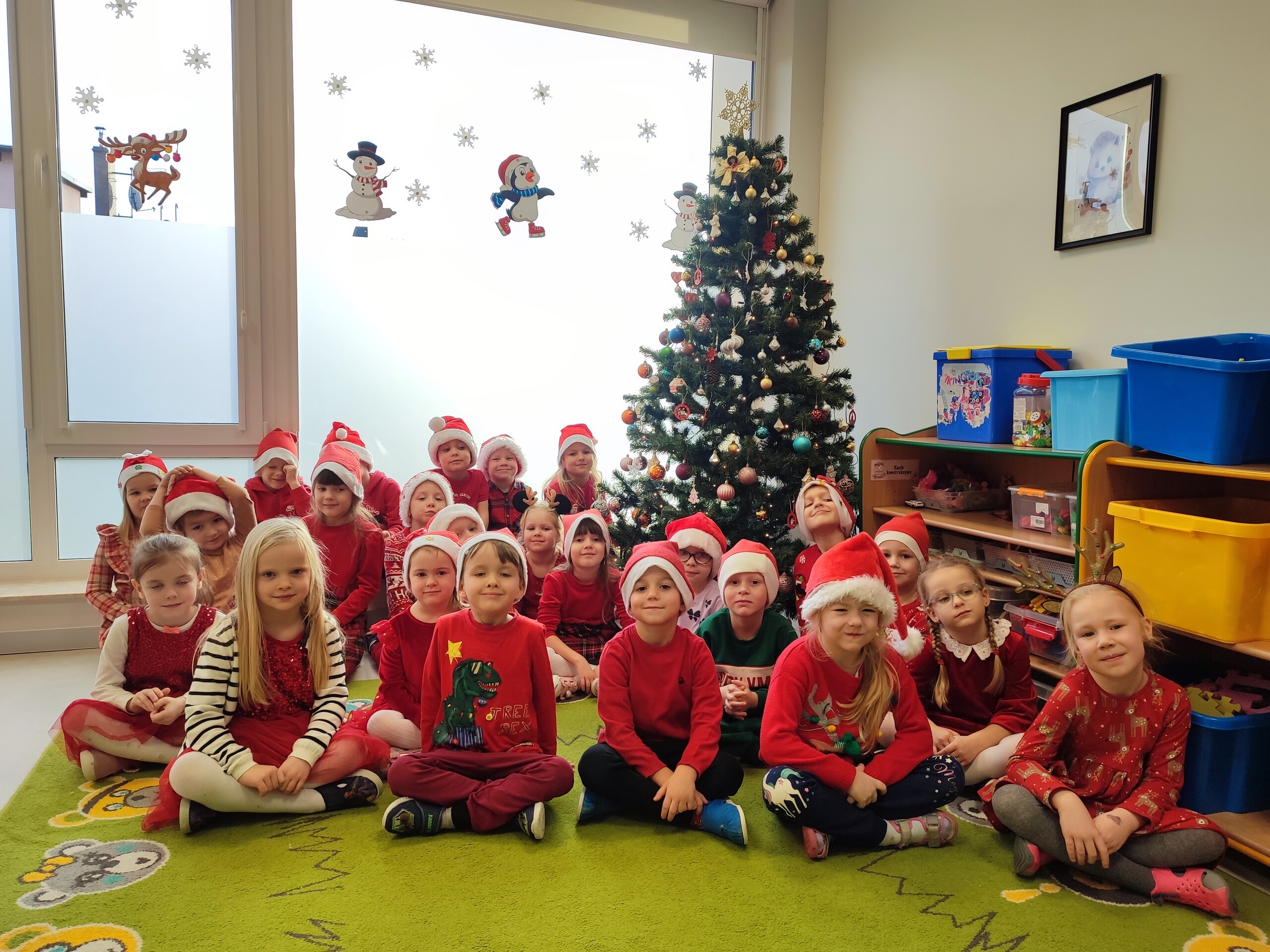 Zgodnie z tradycją 6 grudnia uroczyście obchodziliśmy w przedszkolu mikołajkowe święto. W tym dniu nasze przedszkolaki zamieniły się w pomocników Mikołaja i przyszły do przedszkola w czerwonych strojach oraz czapeczkach. Już od rana dzieci zastanawiały się czy Mikołaj odwiedzi ich salę i czy przyniesie prezenty. Jak co roku Mikołaj nie zawiódł dzieci i przybył na czas - niezwykle wesoły, rozmowny i chętny do wspólnej zabawy! Spotkanie z nim przebiegało w bardzo radosnej i przyjaznej atmosferze.