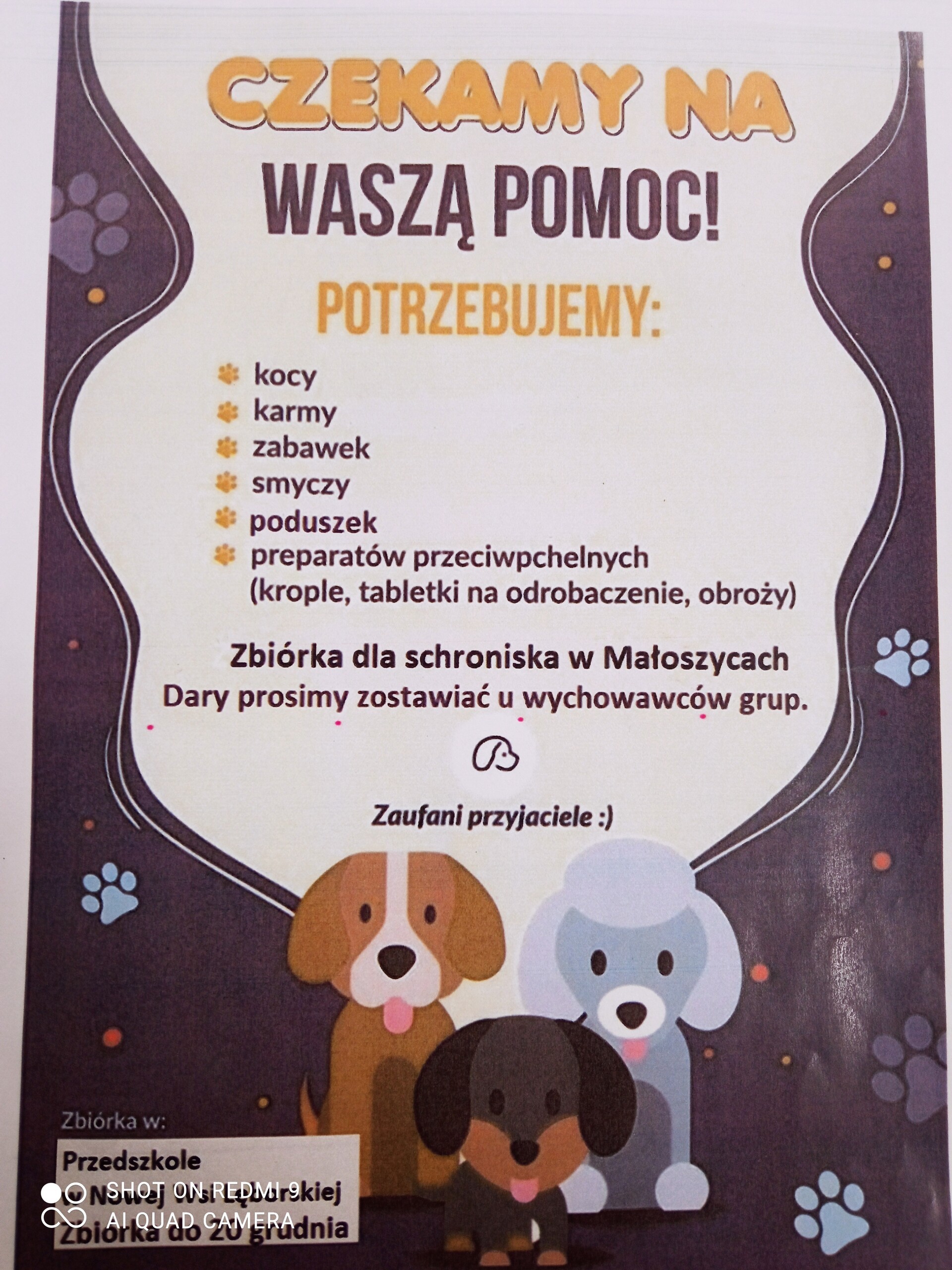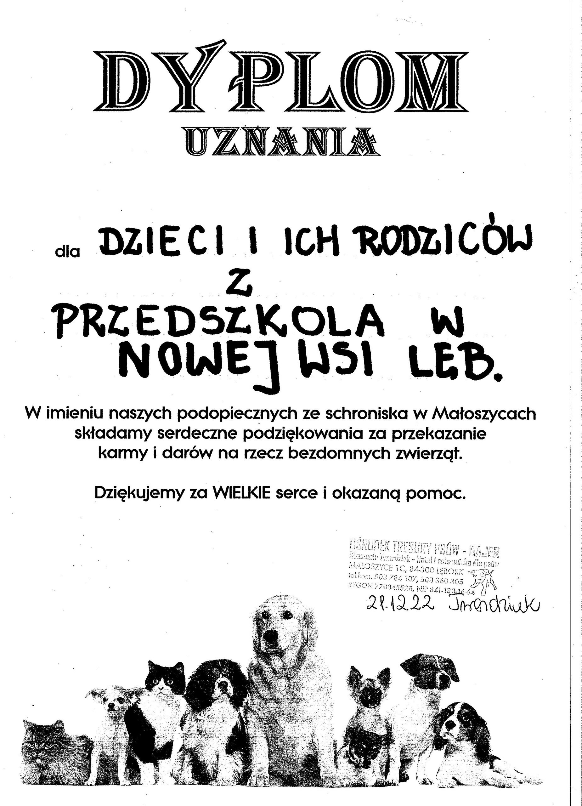 za aktywny udział w zbiórce darów dla kotów i psów ze schroniska. Dzięki dużemu