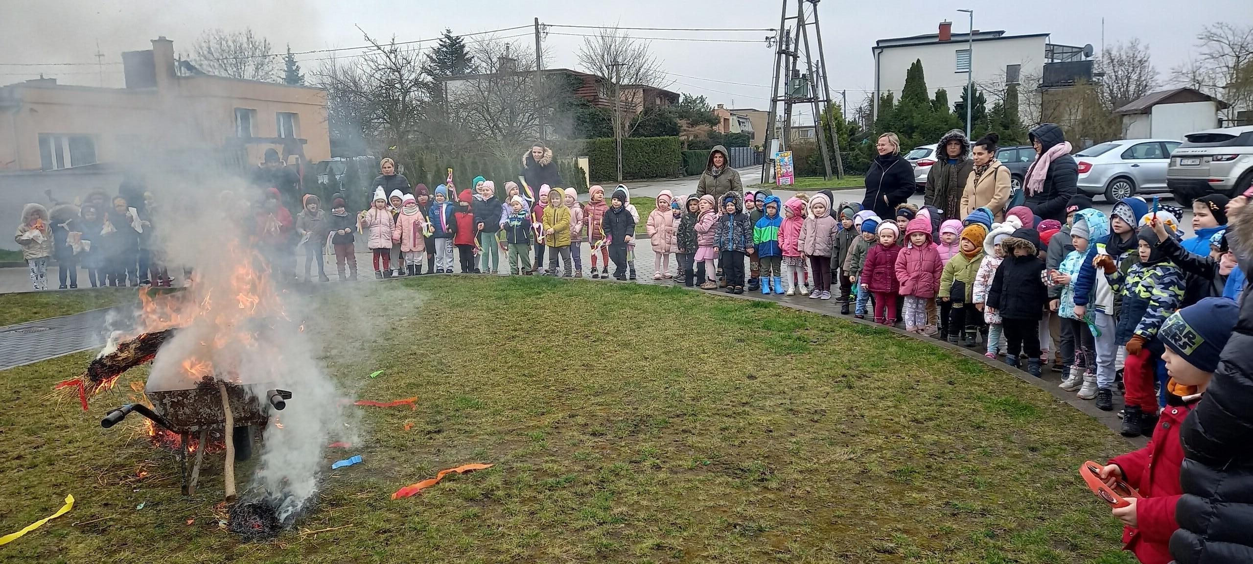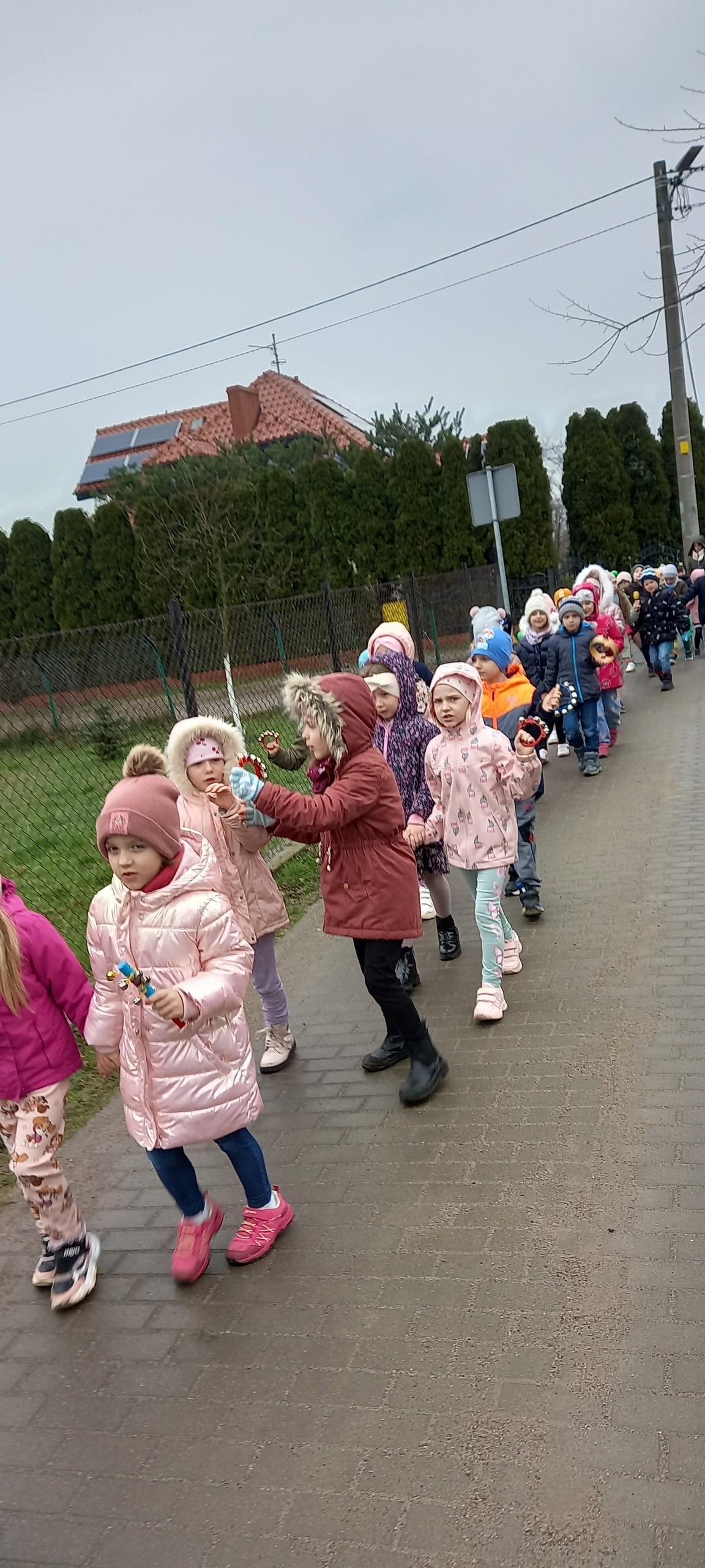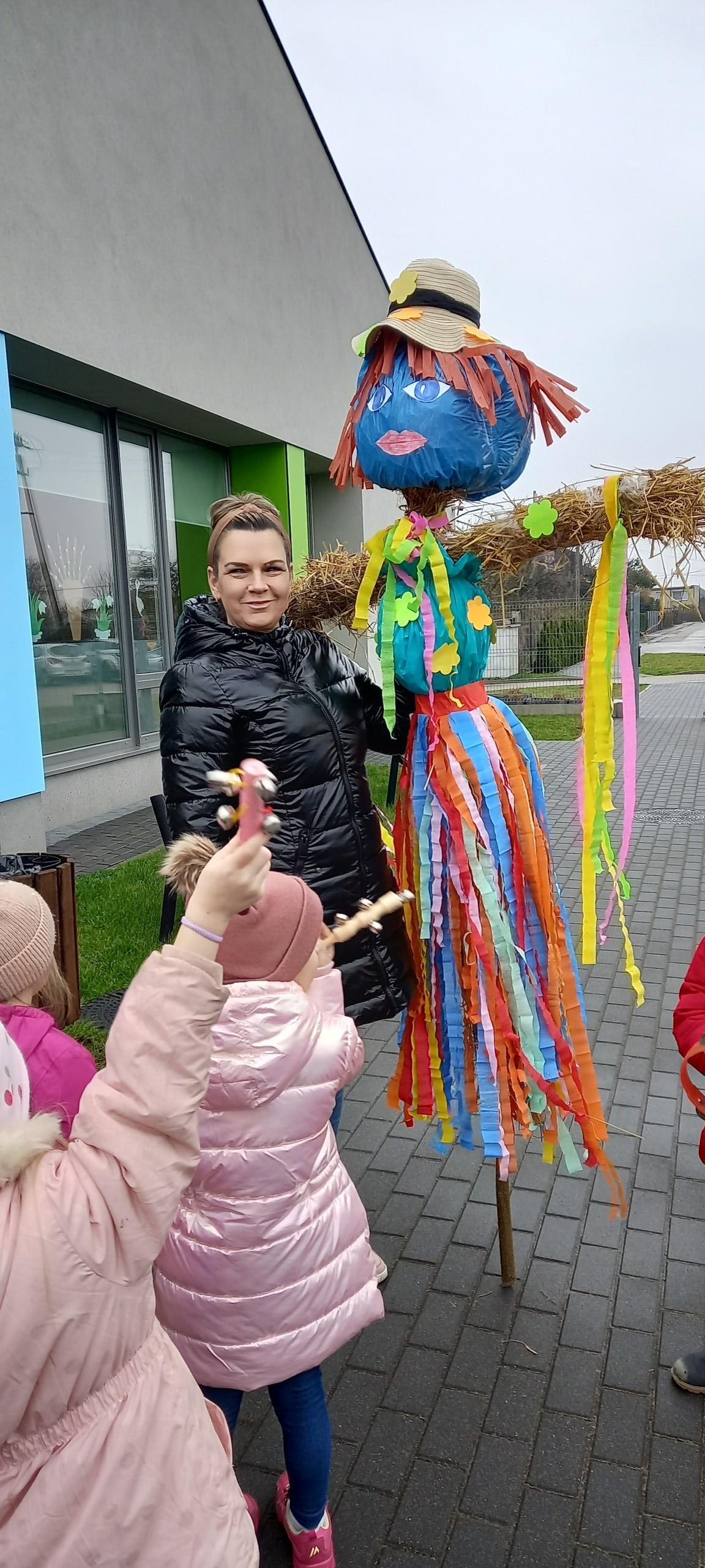 Dnia 21 marca zgodnie z tradycją dzieci z Przedszkola w Nowej Wsi Lęborskiej powitały Wiosnę w pochodzie z Marzanną.