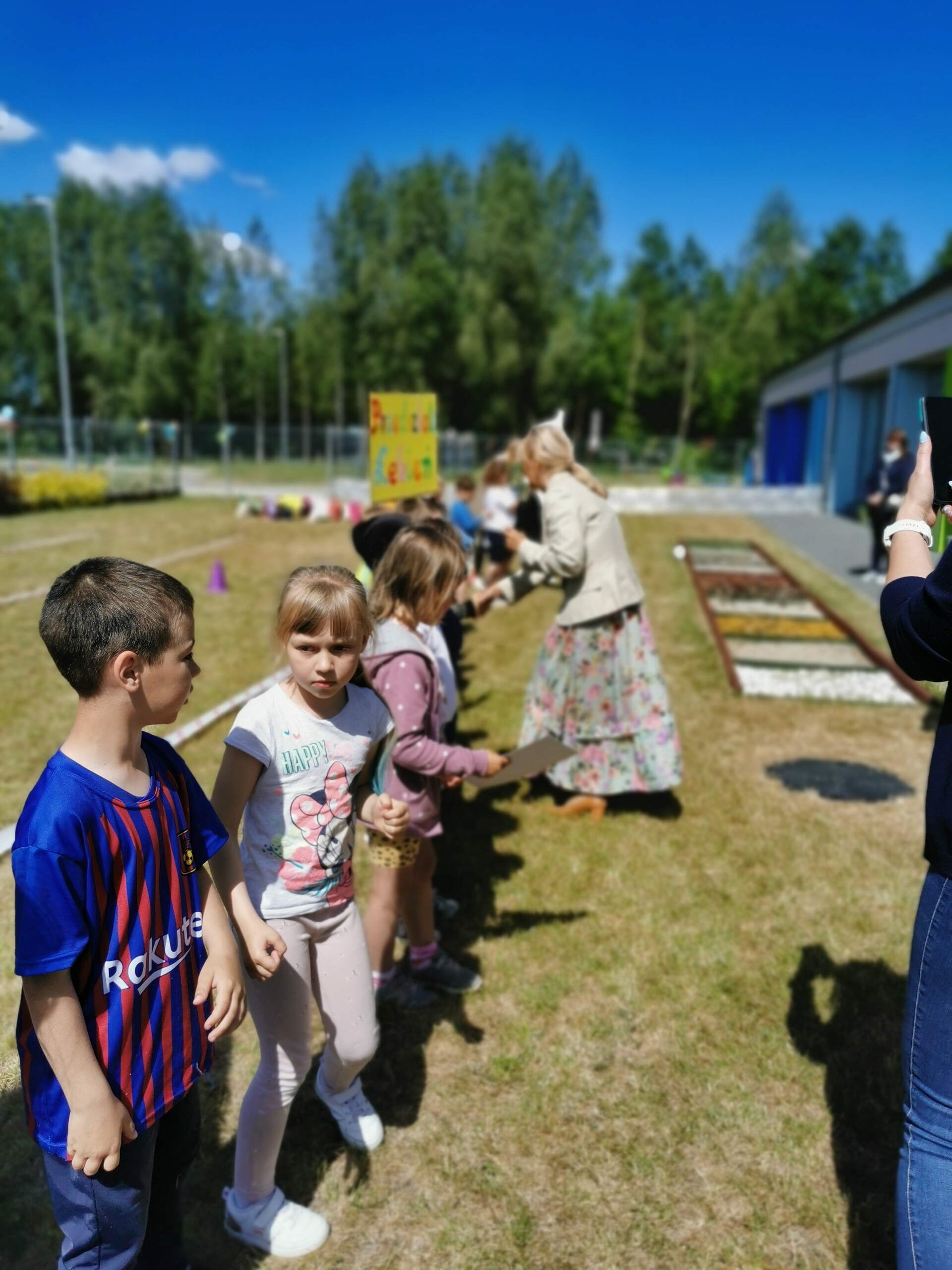 Po wysiłku każdy z uczestników otrzymał słodki poczęstunek, aby „doładować akumulatory” przed kolejnymi zajęciami w przedszkolu. Dzieci były zmęczone, lecz szczęśliwe, o czym świadczyły uśmiechnięte buźki.