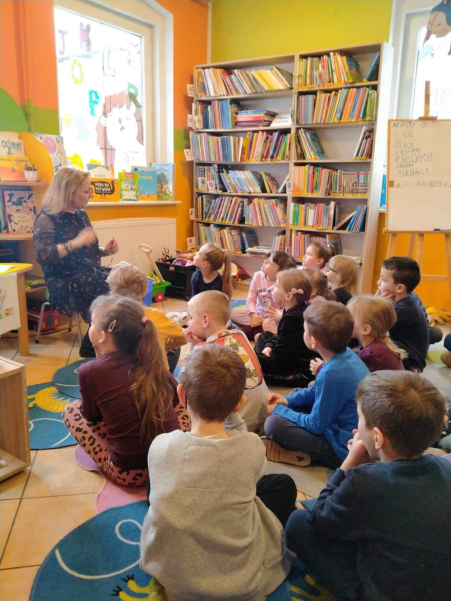 Dzieci z grupy Tygryski I Mrówki uczestniczyły w zajęciach w Bibliotece w Nowej Wsi Lęborskiej z okazji Dnia Języka Ojczystego przygotowanych przez panią Anitę Pasiuk.